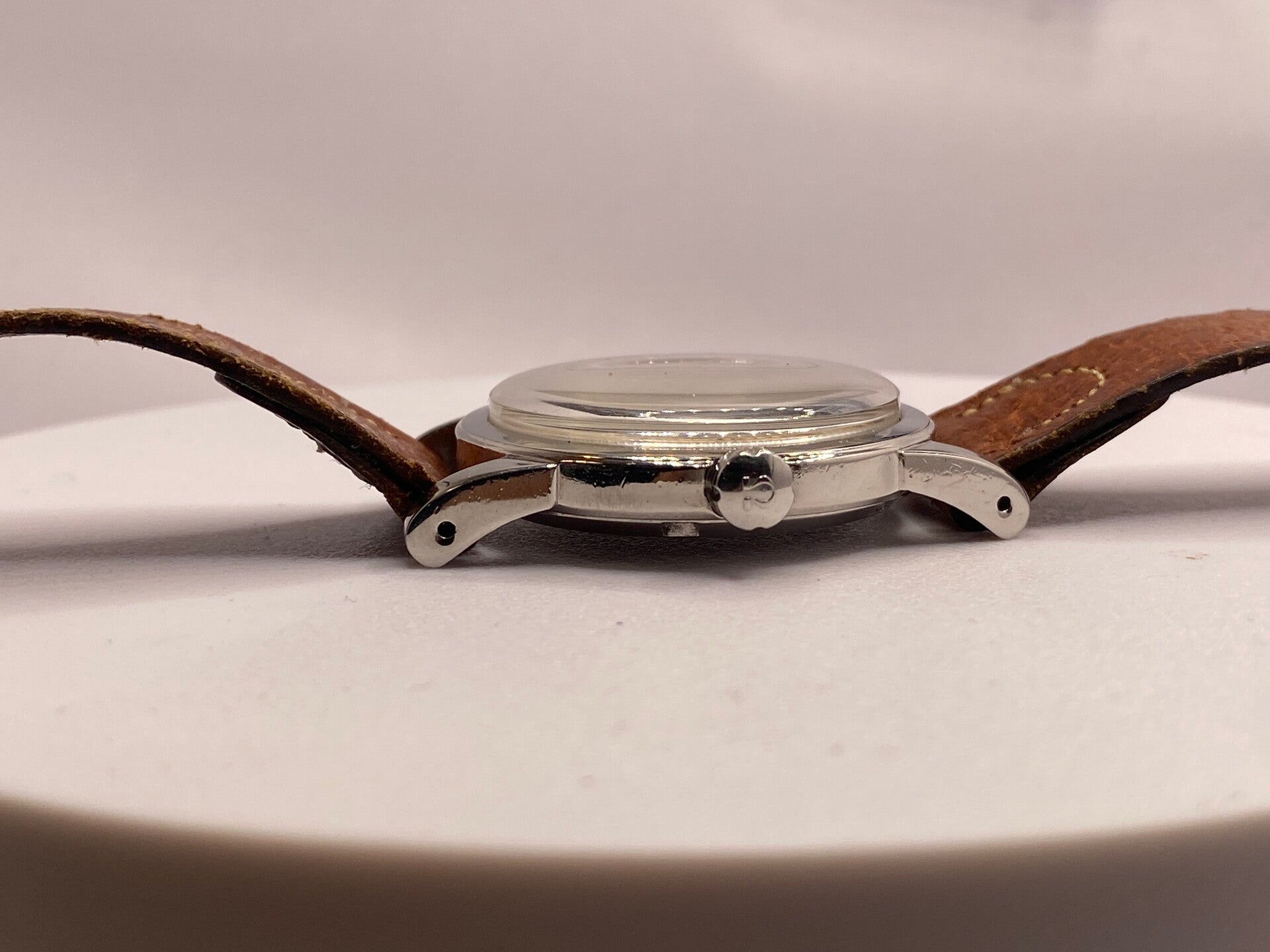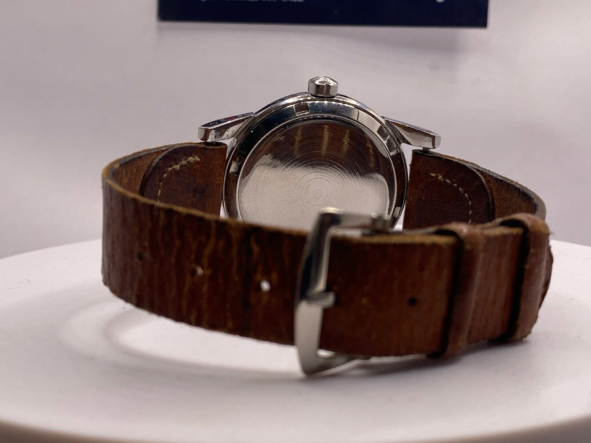 • Bracelet : Cuir brun vintage avec surpiqûres, prêt à être porté.